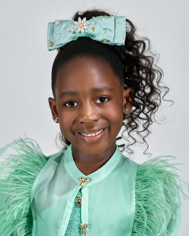 Add a touch of garden charm with Haven. This handmade girls’ bow hair clip is delicately hand-beaded with a pretty floral pearl centre, perfect for kids’ special days.