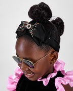Sparkle boldly with Opaline. This handmade girls’ headband features a matte satin bow headband, embellished with multicoloured Swarovski crystals for dazzling kids’ party style.