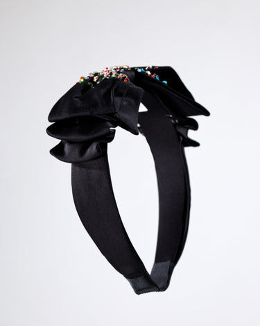 Material: Satin wrap, matte satin bow, Swarovski crystals (multi-size, multi-colour)