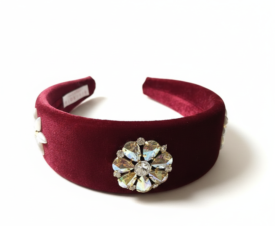 Velvet Daisy Burgundy Crown Headband